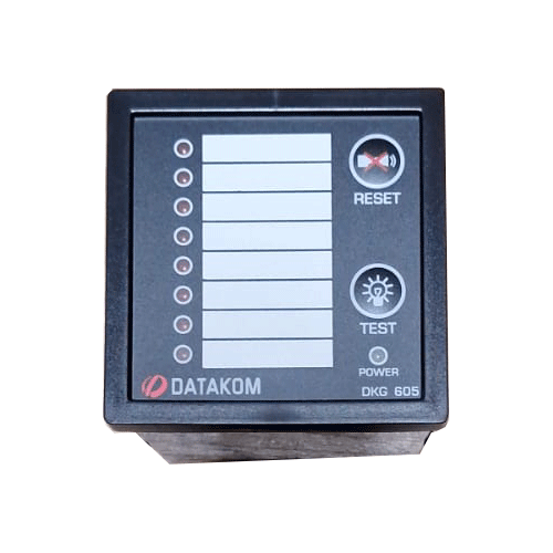 Datakom DKG-605, jeneratör ve motor kontrol sistemlerinde kullanılan, kompakt yapılı, 8 kanallı ve programlanabilir bir alarm anons ünitesidir